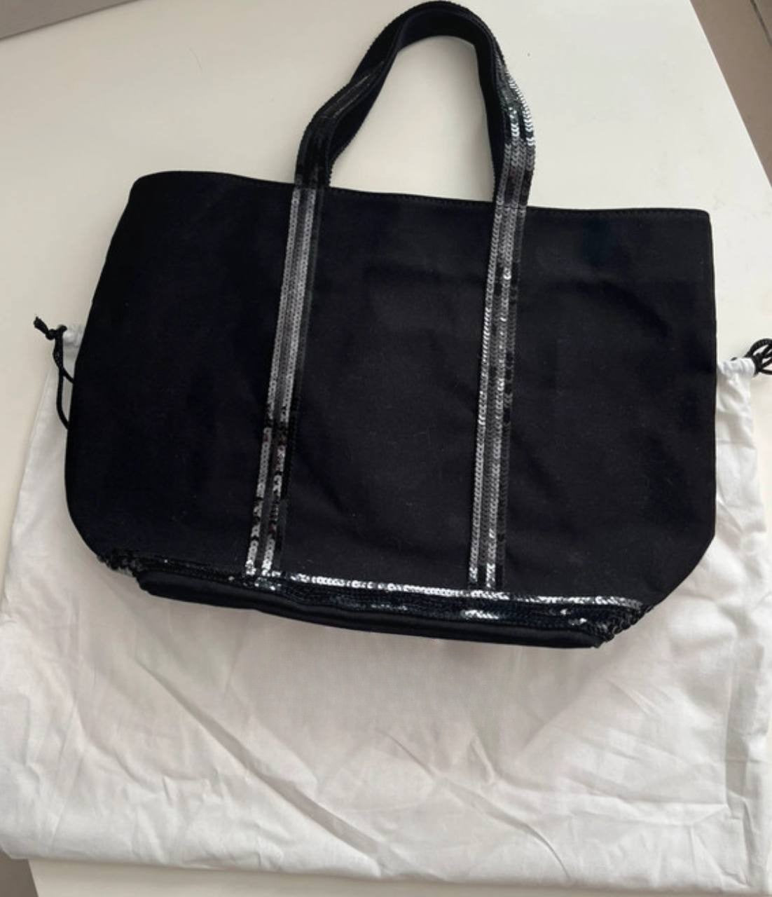 À la fois pratique et élégant, ce cabas noir se distingue par ses anses et sa base ornées de sequins brillants. Doté d’une bandoulière amovible et de deux anses longues, il s’adapte à tous les styles et se porte aussi bien à la main qu’à l’épaule.